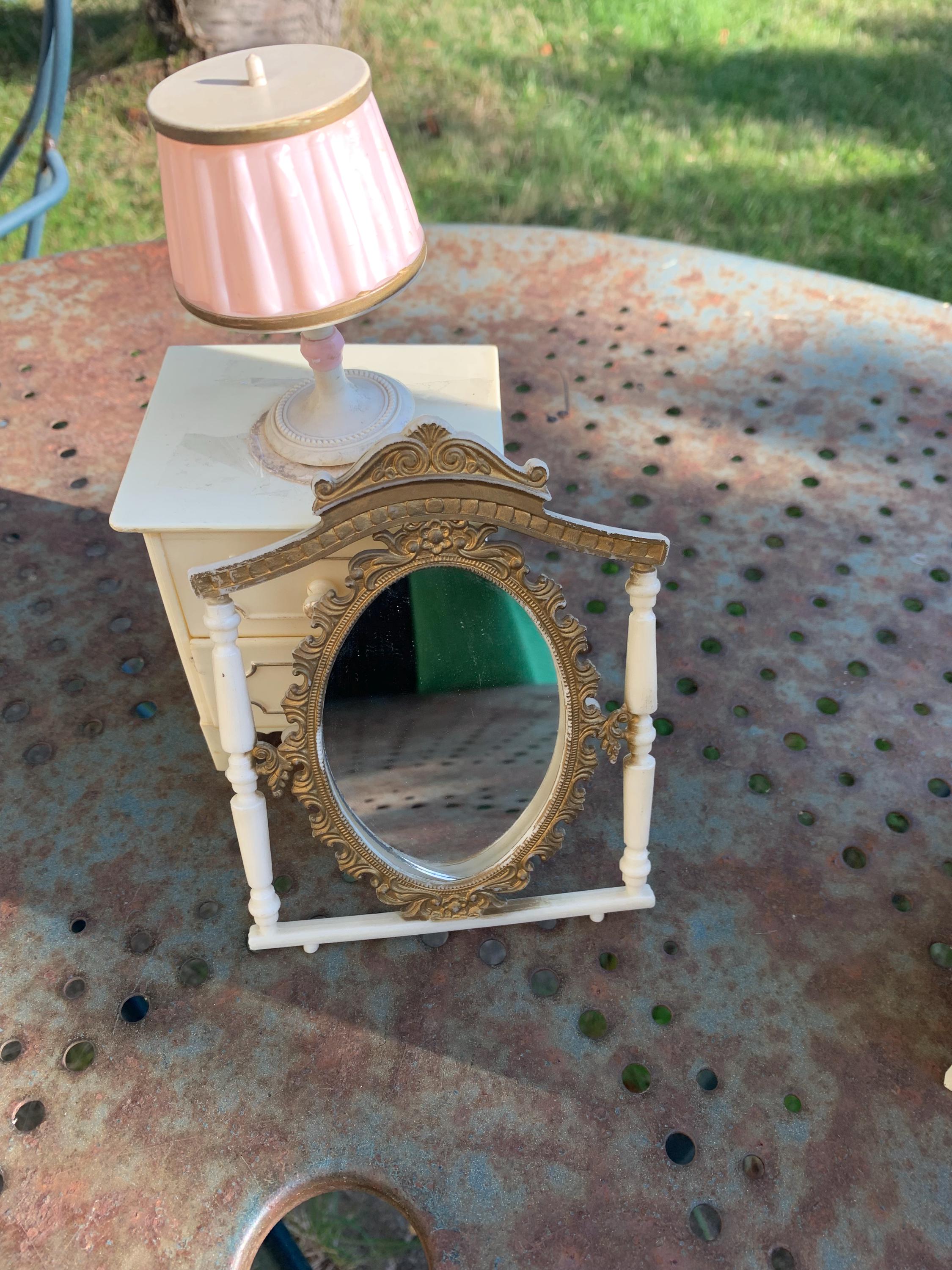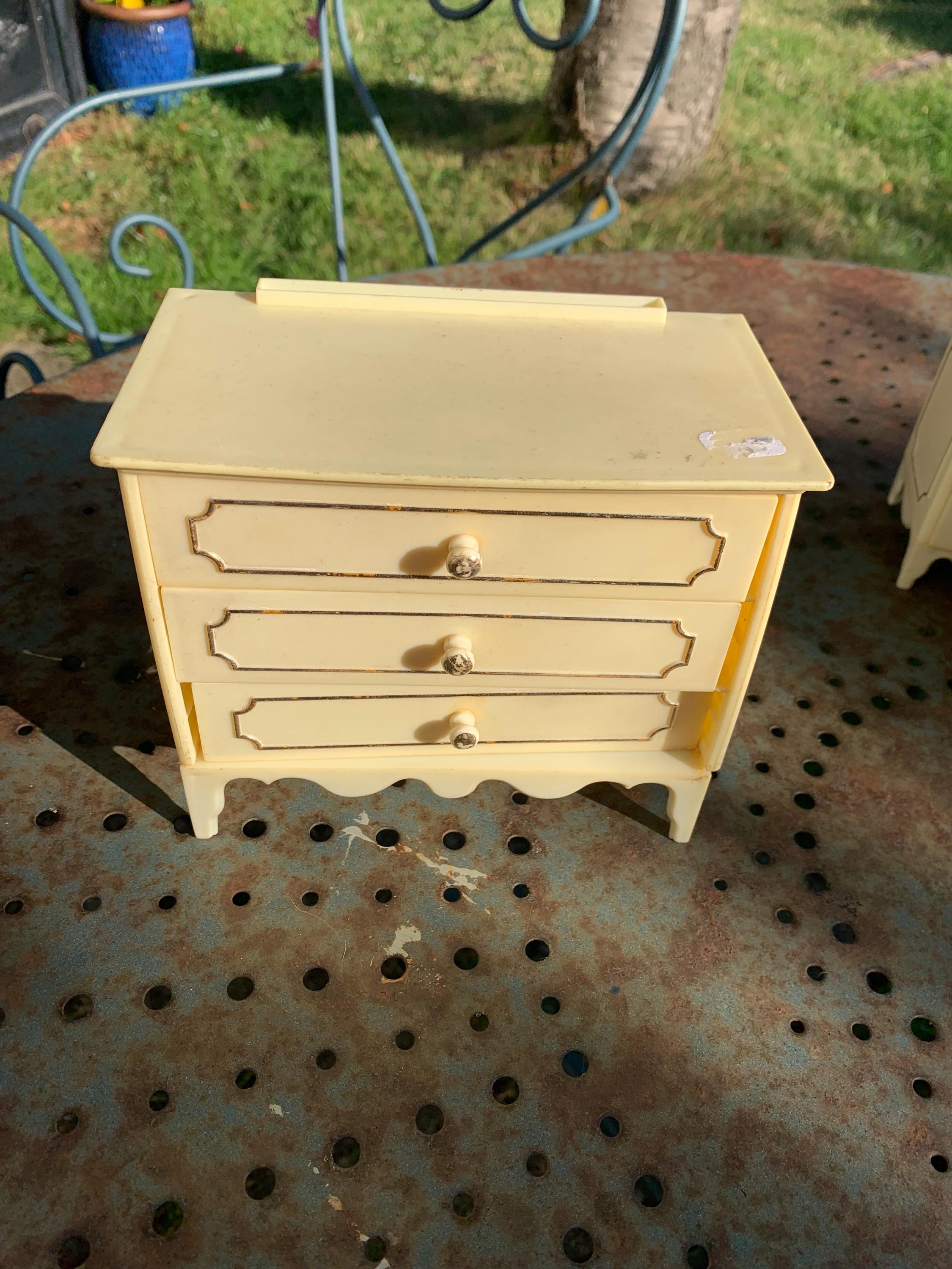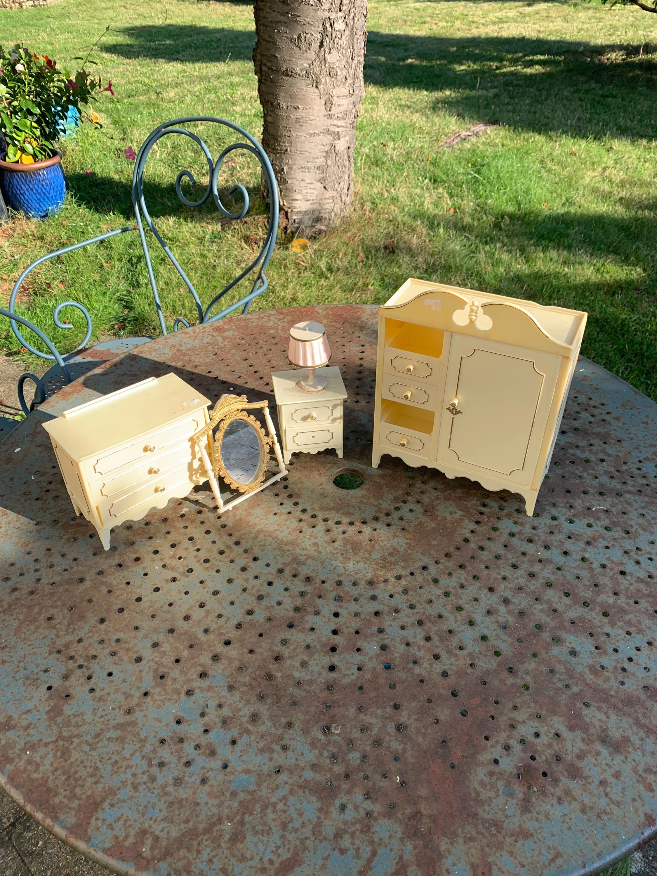 Set of chest of drawers, wardrobe, bedside, mirror, lamp furniture, for mannequin dolls, plastic made in Italy vintageGood used condition