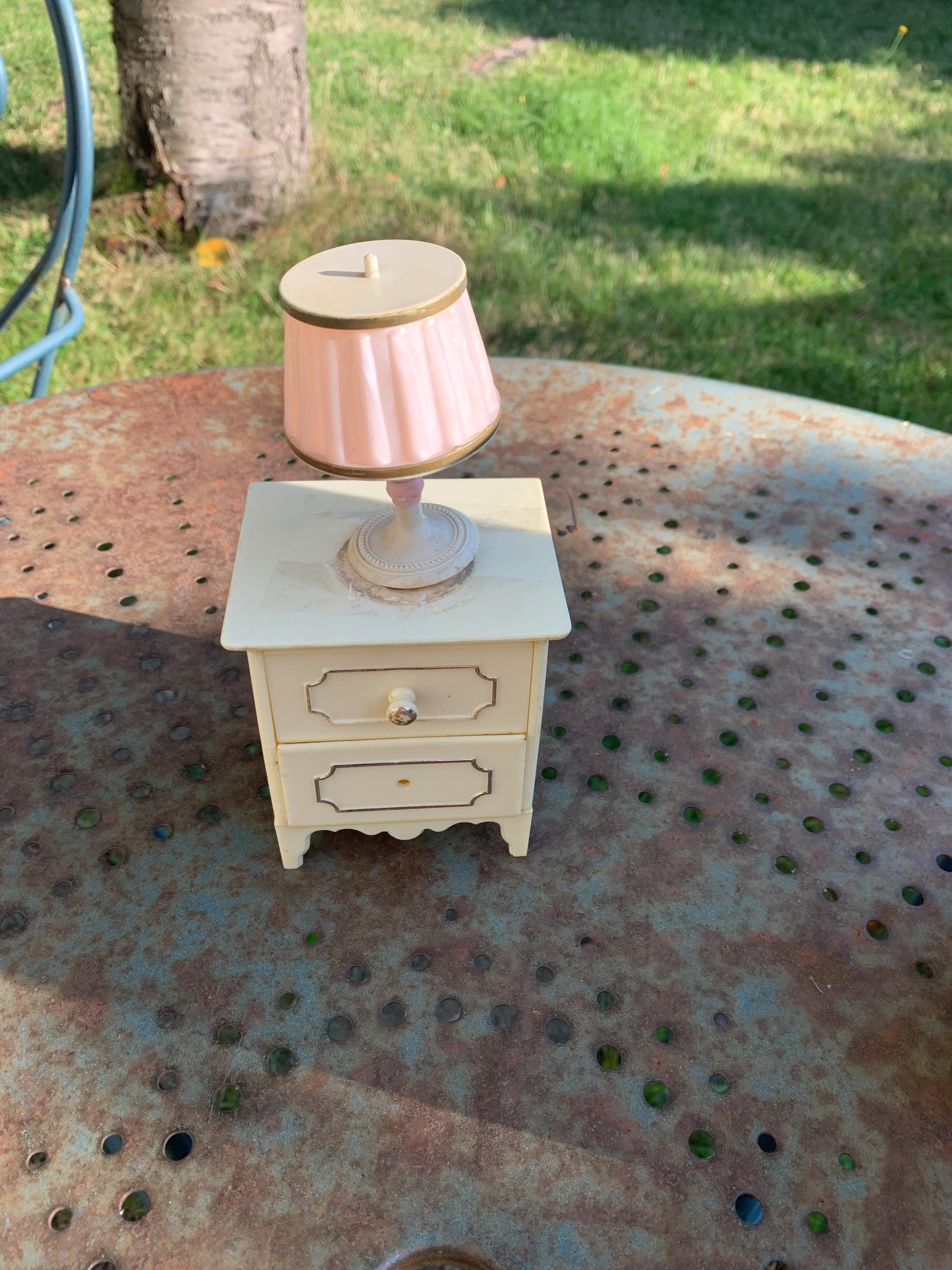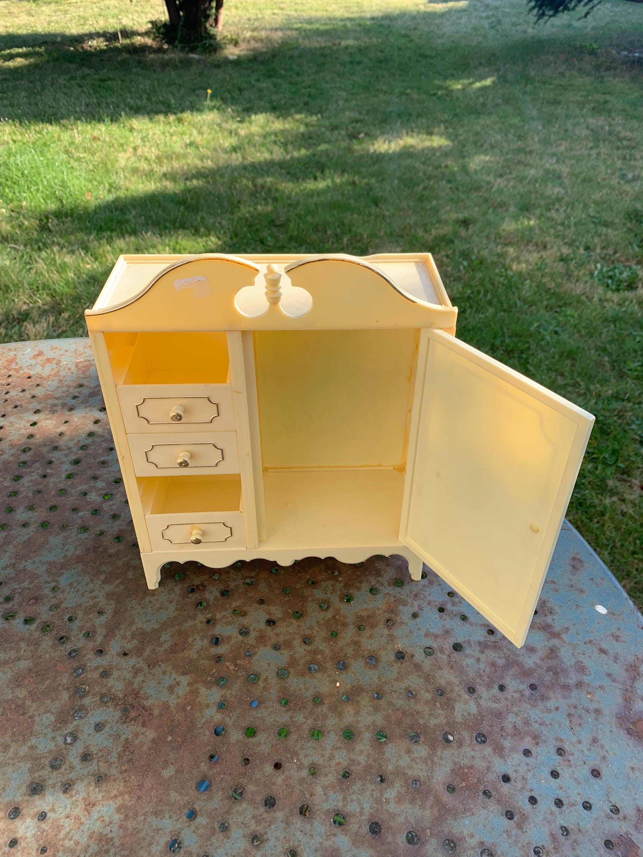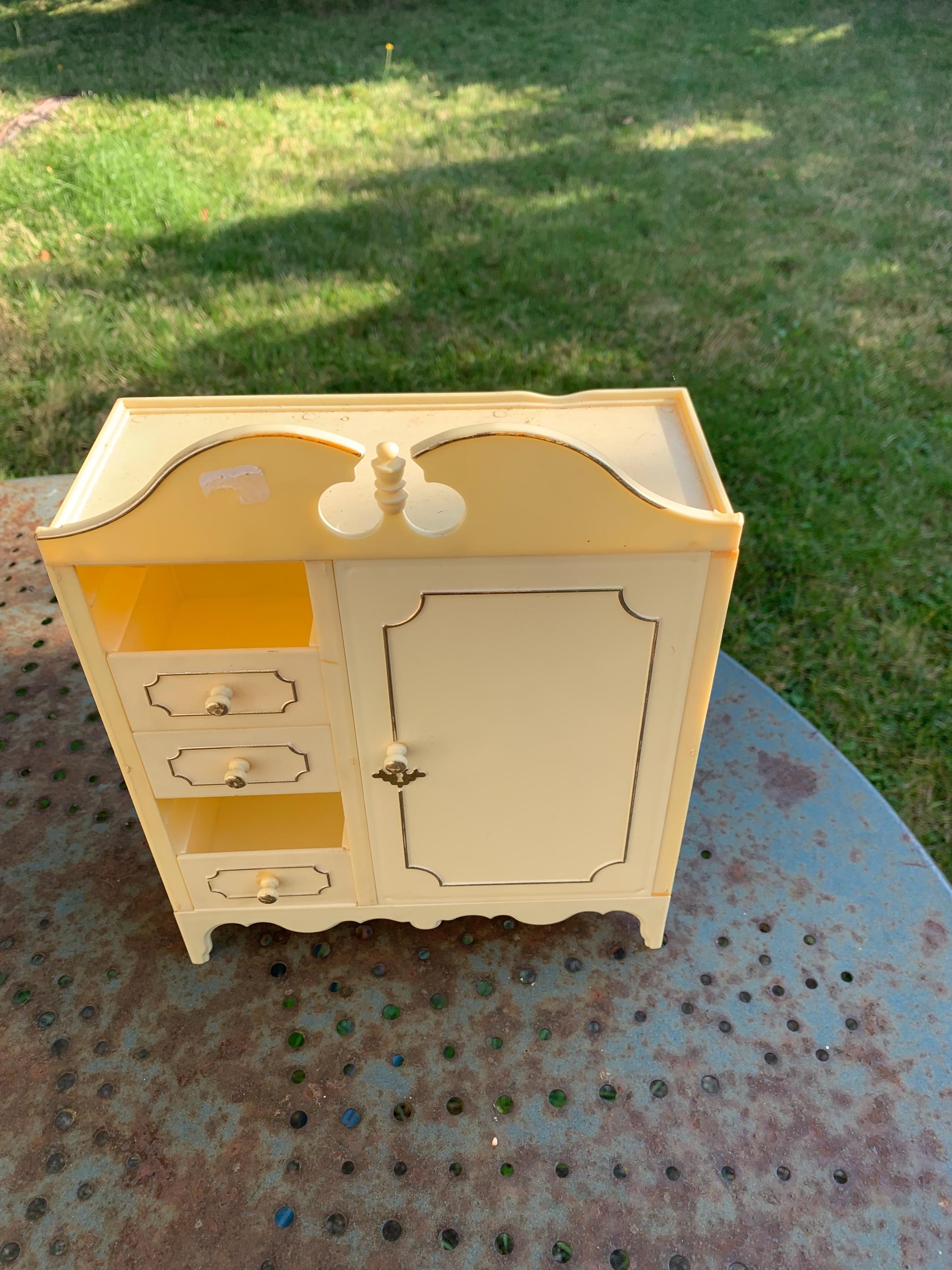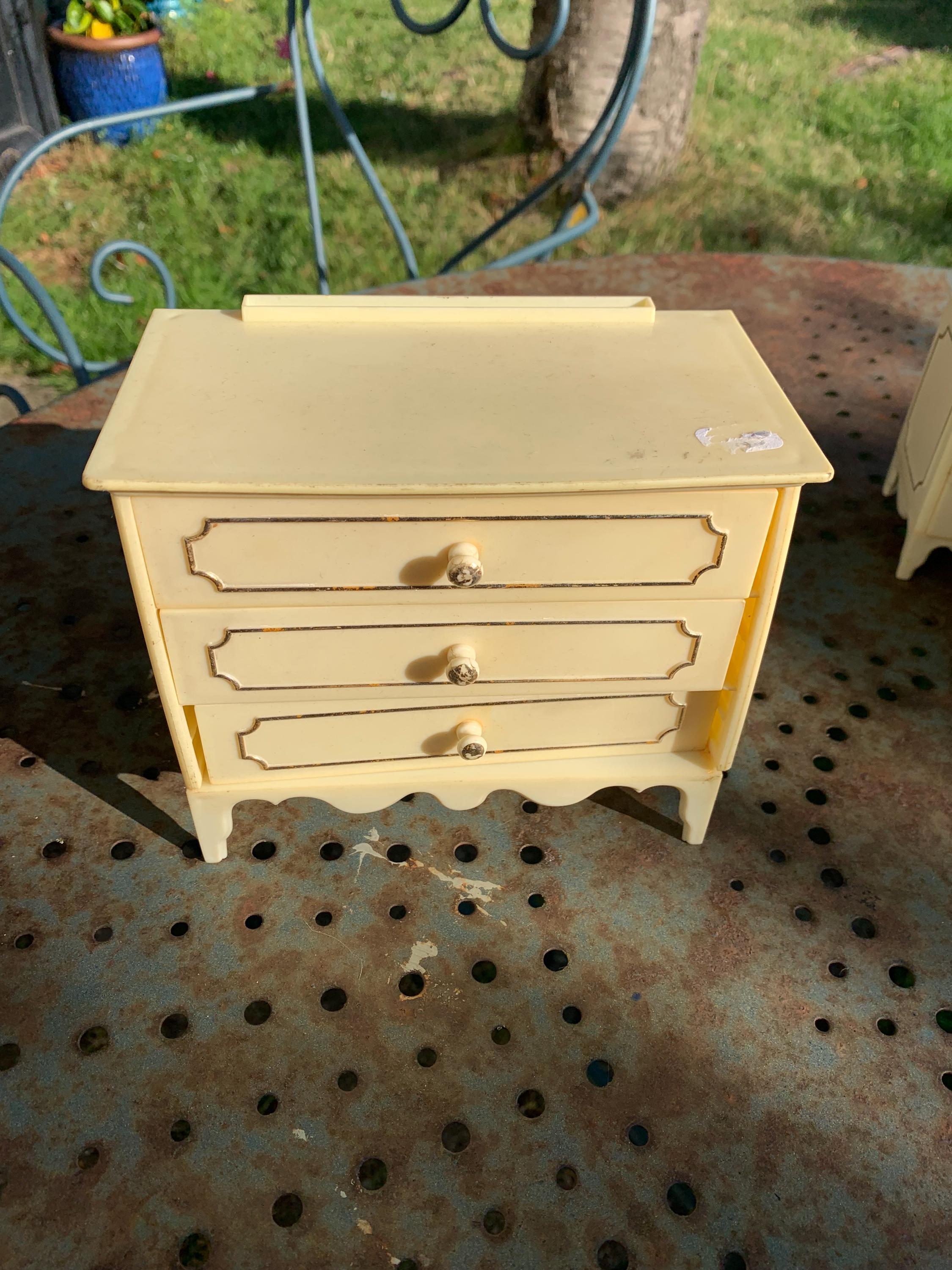 Set of chest of drawers, wardrobe, bedside, mirror, lamp furniture, for mannequin dolls, plastic made in Italy vintageGood used condition