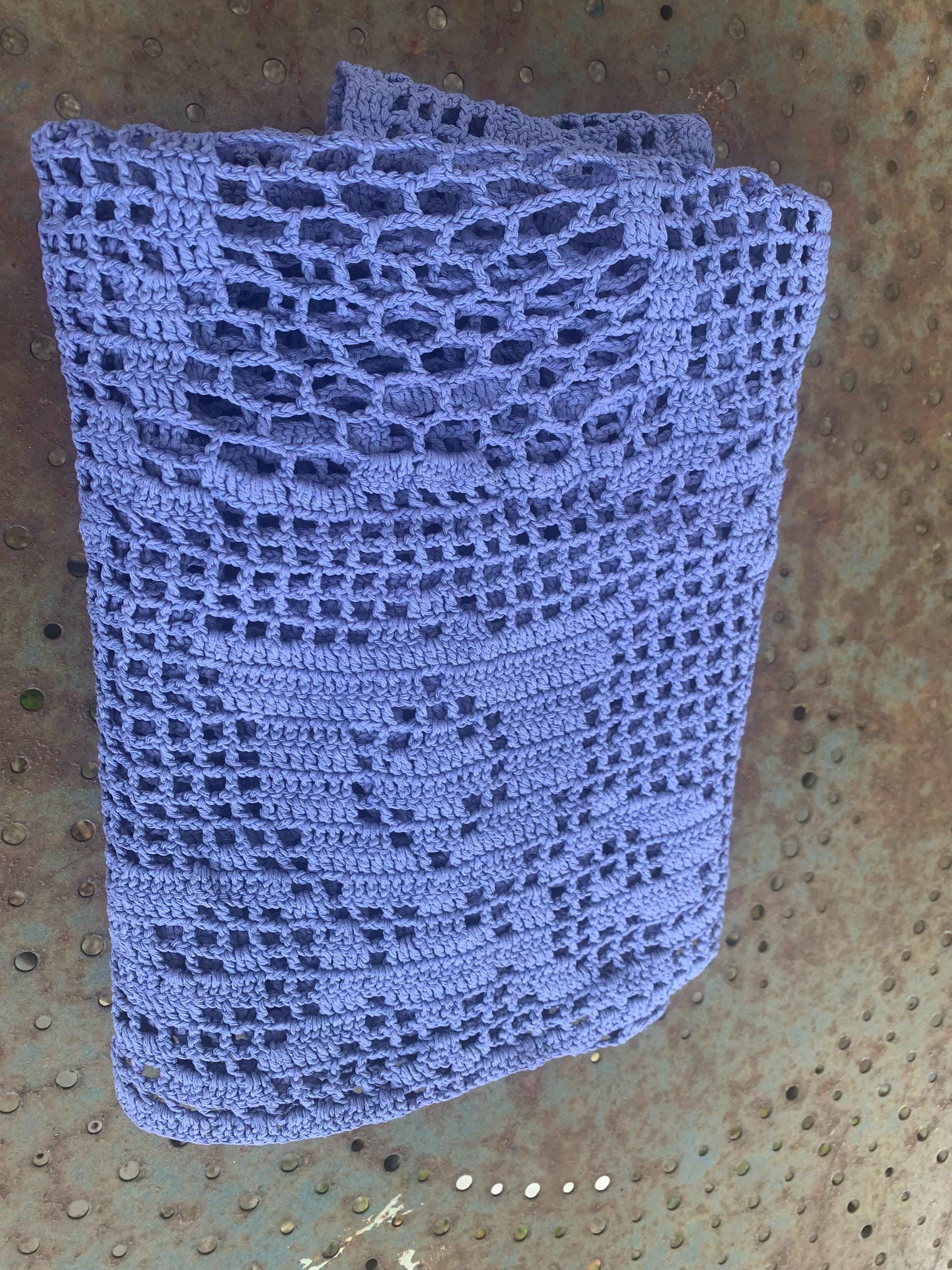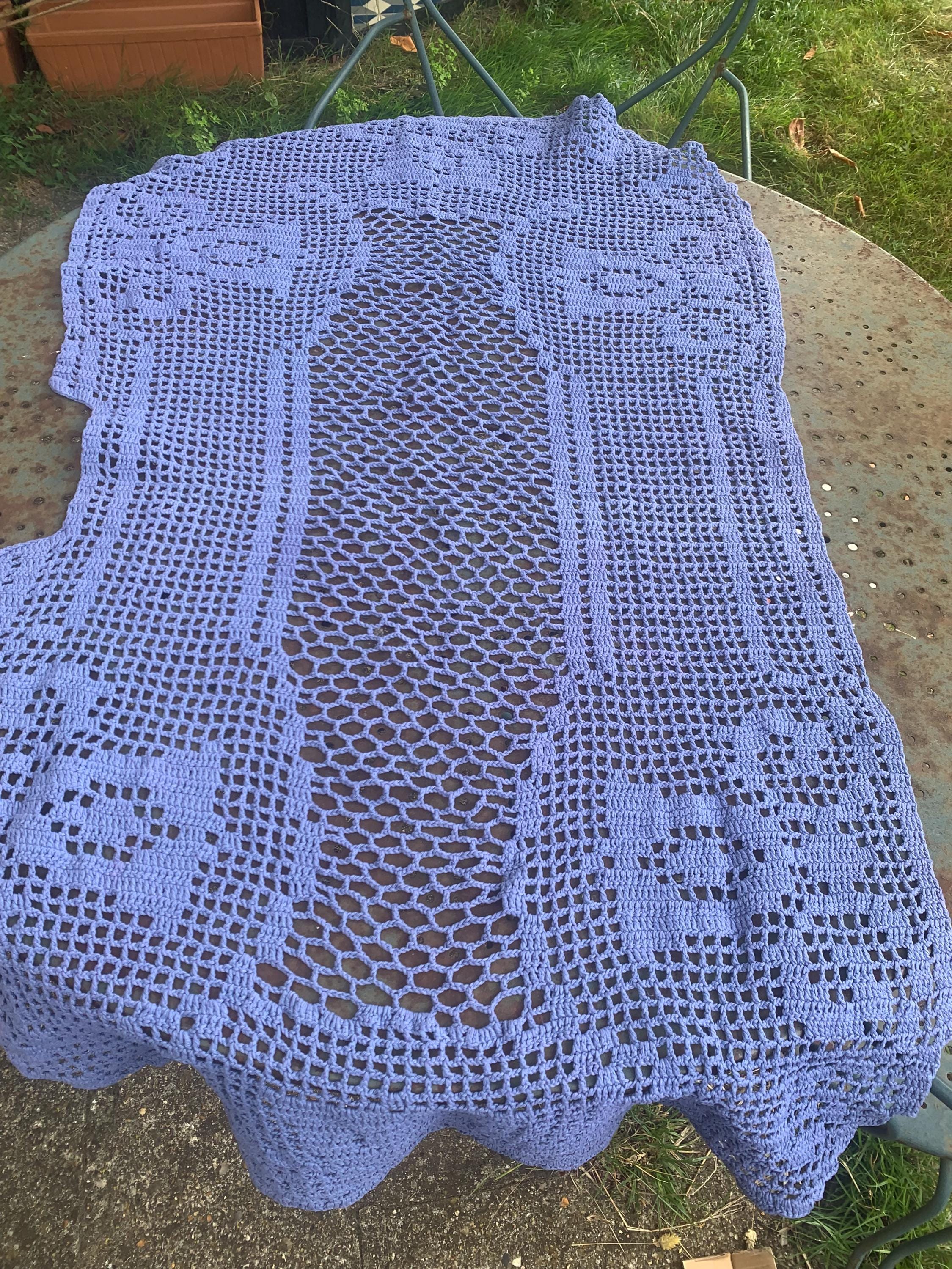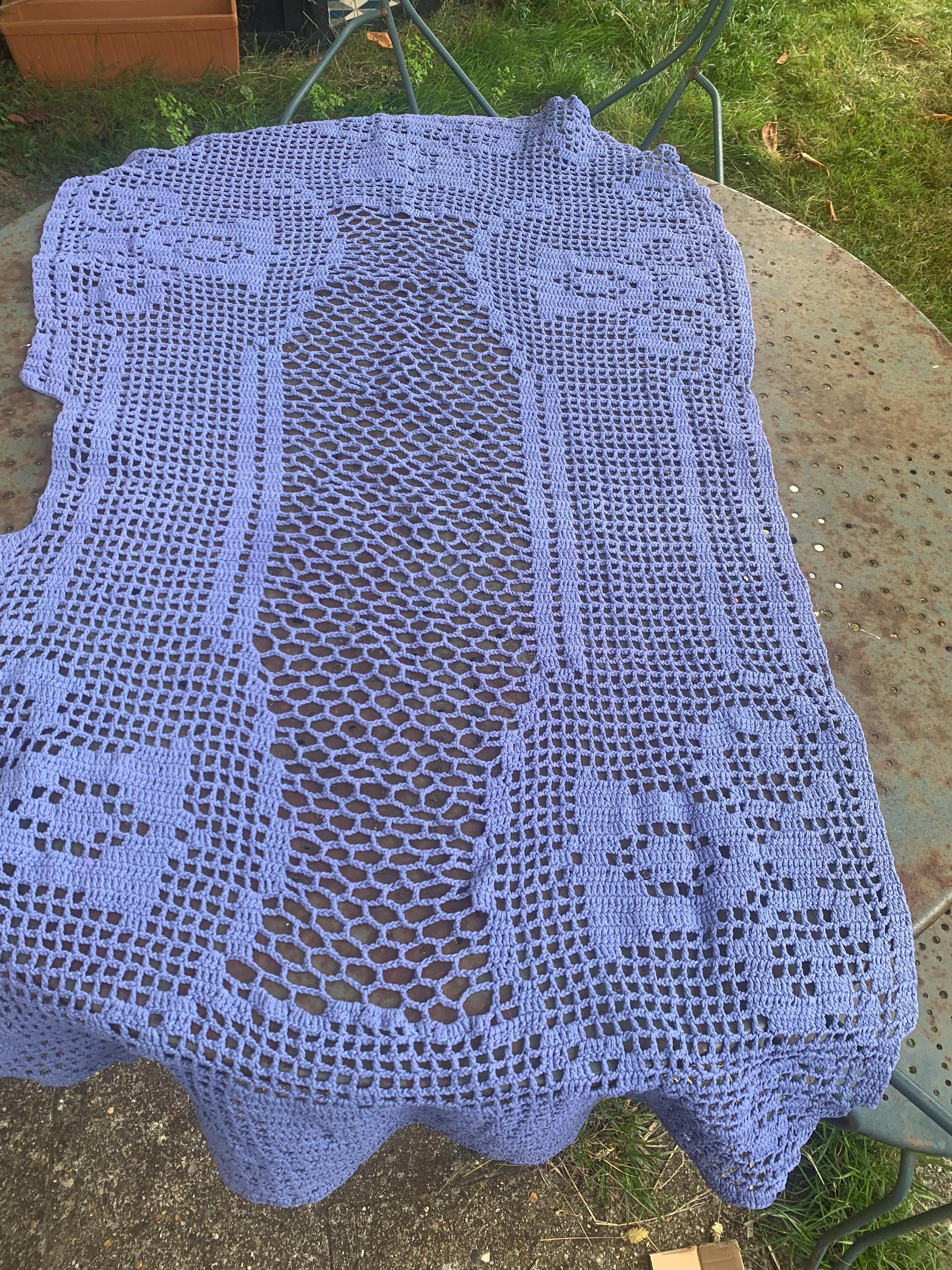 Crocheted cotton throw, table runner, handmade, blue-purple, vintageDimensions: 120 x 65 cmVery good used condition