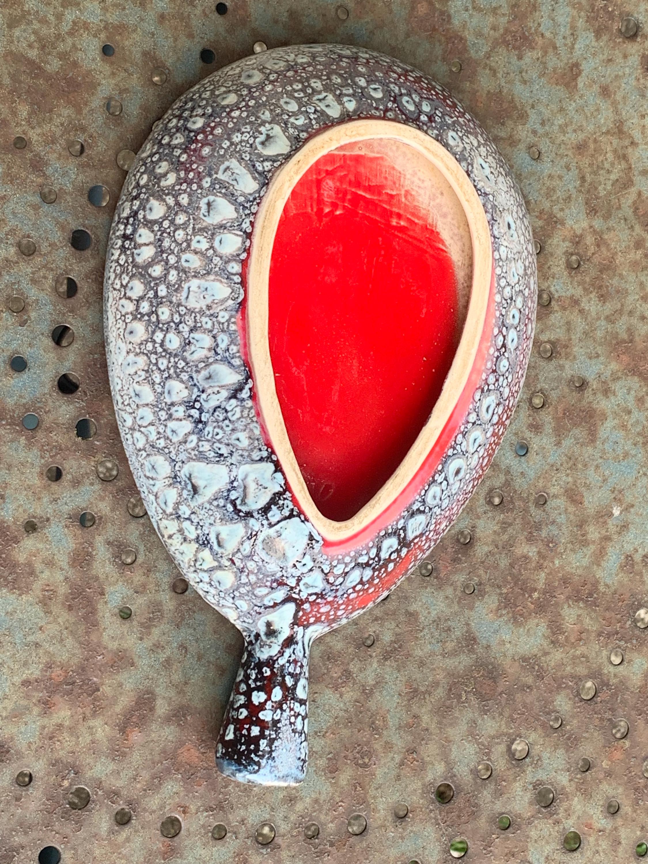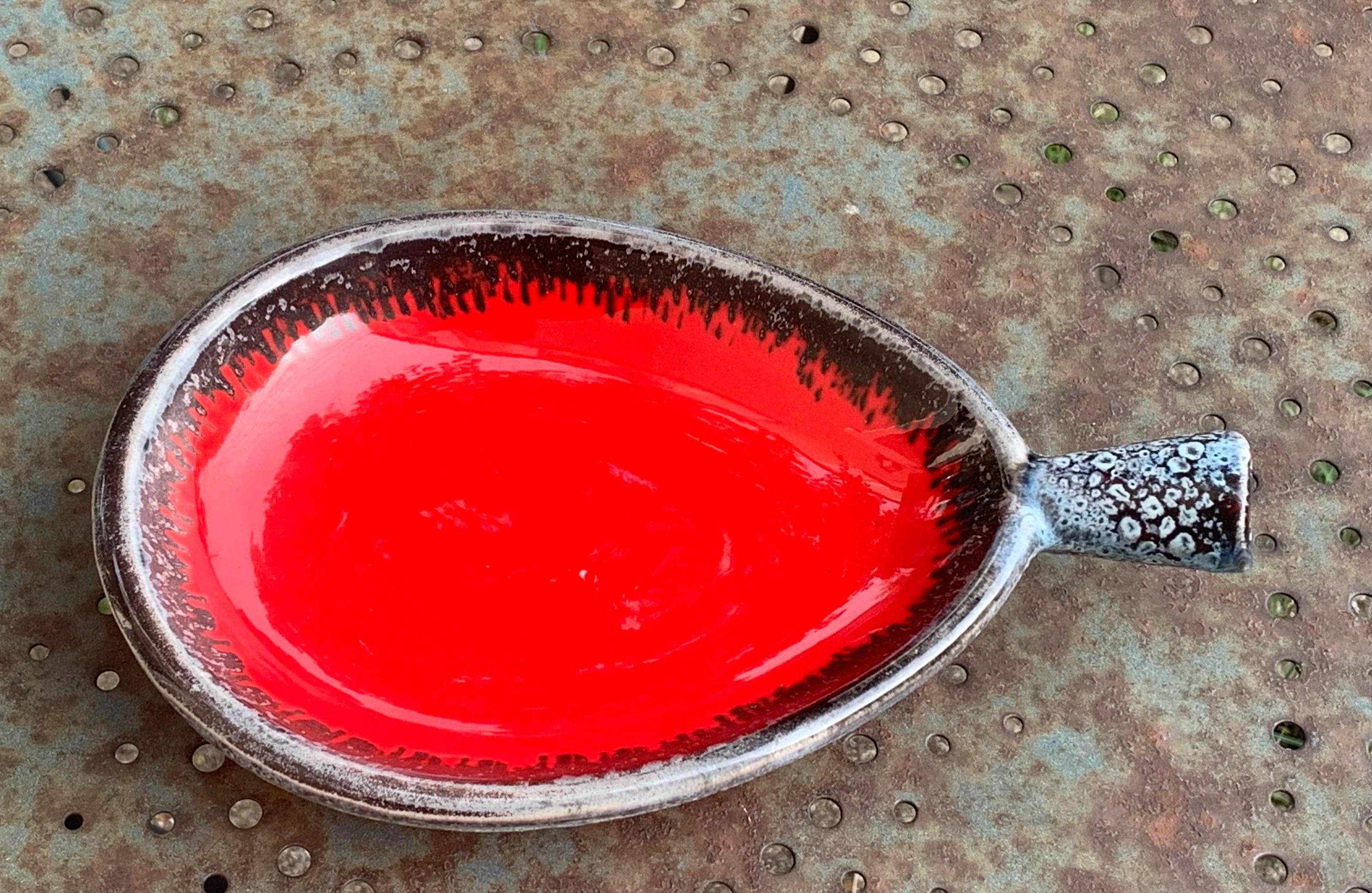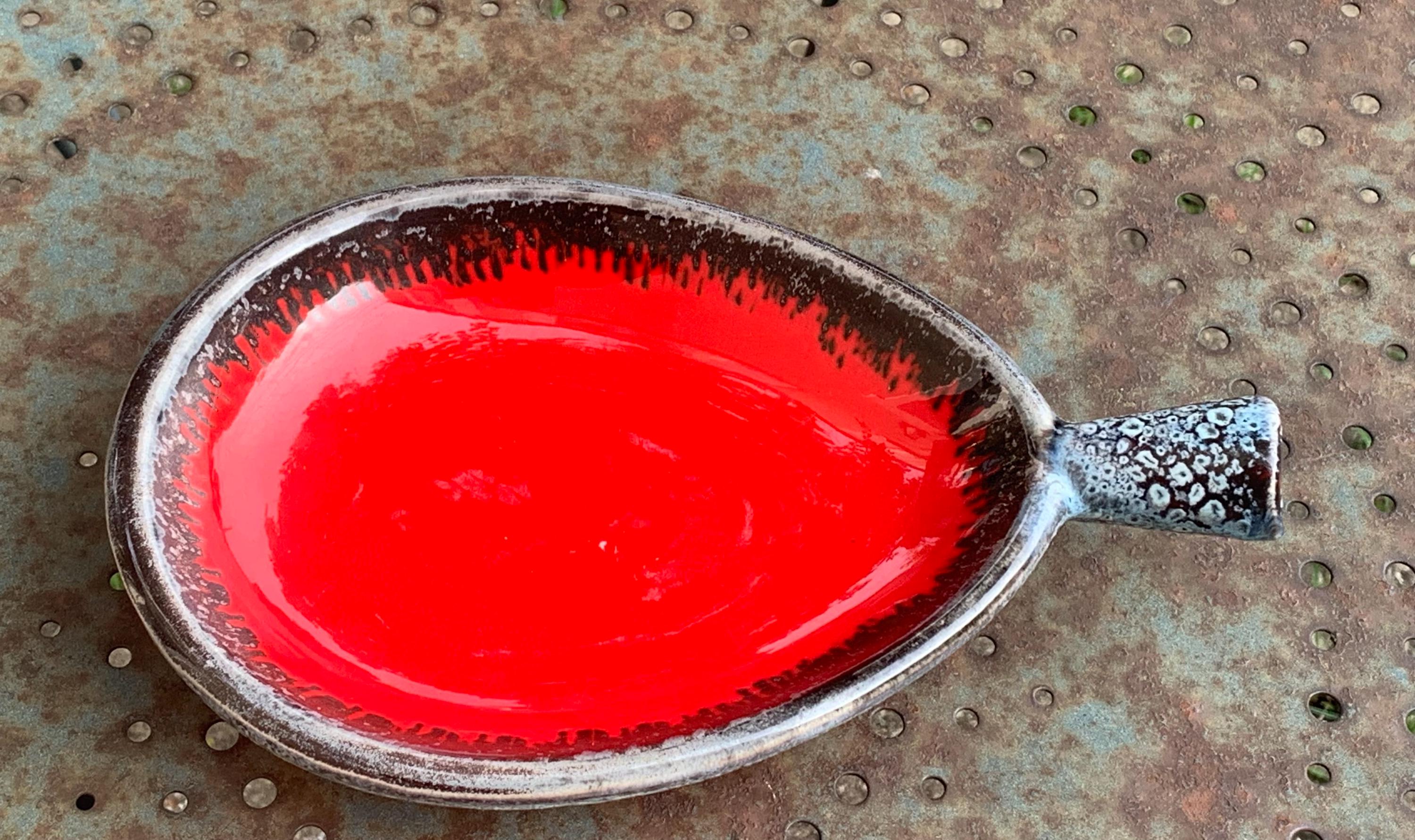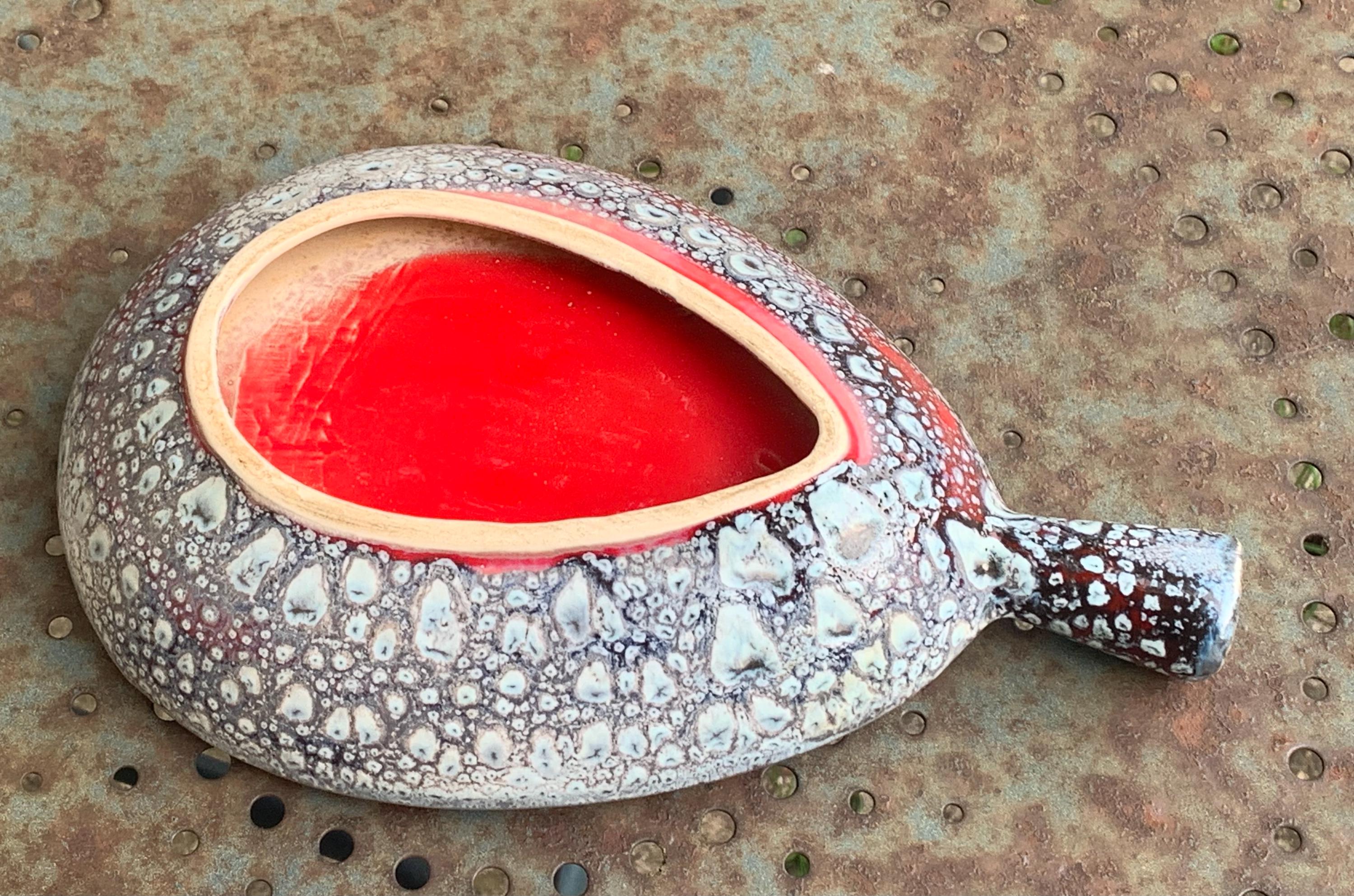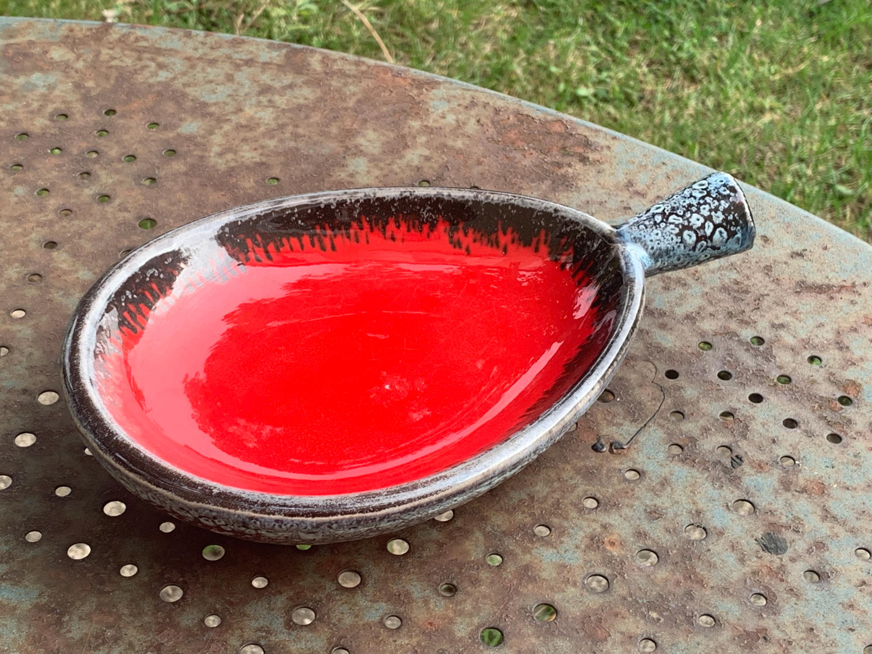 Vintage ceramic bowl, red in color, original shape and design, vintage Vallauris.